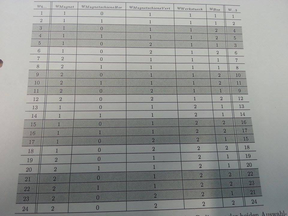 Ja also ich möchte es so codieren wie auf der Tabelle. Denn ich bekomme immer Ausgaben in Form von 5 spaltigen Vektoren und das ist schon aufwändig, immer wieder nach zu schauen welche Komponenten betroffen sind.