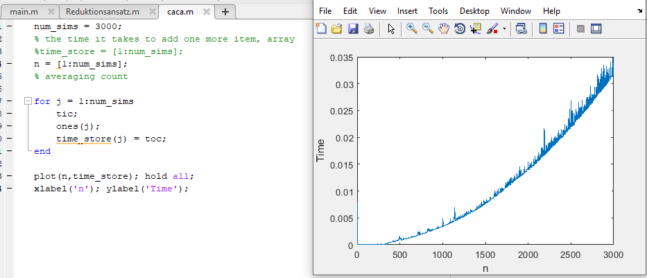 ones(j) generiert eine j x j - Matrix, also j^2 Elemente. Meine Vermutung wäre also, dass der Verlauf eine Parabel ist. Du kannst ja mal mit polyfit ein Parabel fitten.