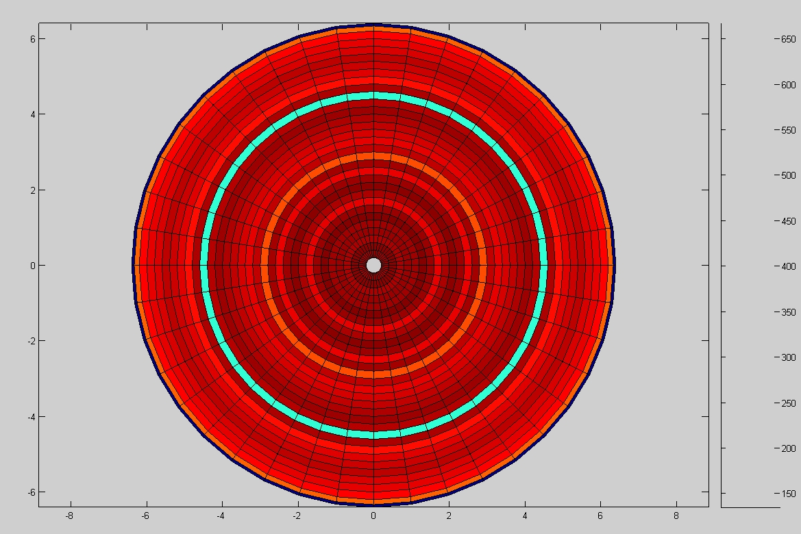 Ich habe es mit Hilfe des Forums schon geschafft die Werte aus Exceldateien in Matlab einzulesen und habe jetzt zwei einzeilige Matrizen. Eine enthält die Radienwerte für die konzentrischen Kreise und die andere enthält Messwerte im Bereich von 100-700. Dabei ist es so, dass einem Radienwert ein bestimmter Messwert zugeordnet ist. Ich möchte nun konzentrische Kreise mit den Radienwerten zeichnen und einen Farbverlauf auf der Fläche erzeugen, der auf den Messwerten basiert. Nur leider bin ich da mit meinem Latein am Ende