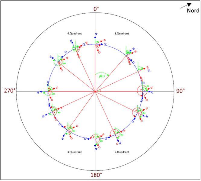 Titel: Koordinatentransformation von N-O auf radial-tangential