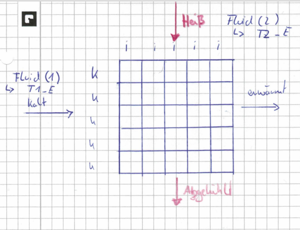 Das Modell verfolgt den Ansatz, dass ein simulierter Kreuzstromwärmeübertrager in einzelne "Kacheln" zerlegt wird. Je nach dem wie viele "Zeilen" und "Spalte" ich also vorgebe, wird der ursprüngliche Wärmeübertrager in immer kleiner Stücke unterteilt.