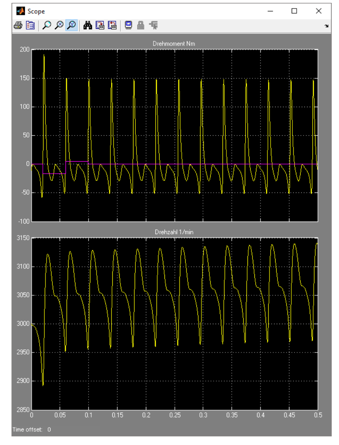 Ich würde gerne ein Drehmomentsignal mitteln sodass es wie das pinke Signal in dem Screenshot aussieht. Ich hatte es schon mit dem moving average block versucht. Genau so einfach mal die Signale durch ihre Anzahl geteilt. Leider erfolglos