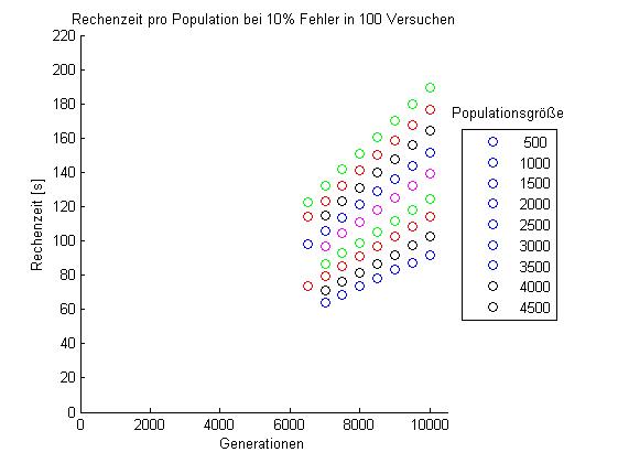 end end end title('Rechenzeit pro Population bei 5% Fehler in 100 Versuchen'); xlabel('Generationen');