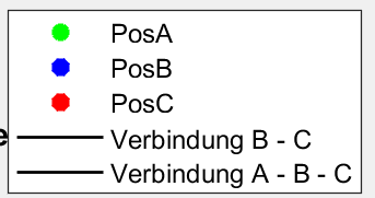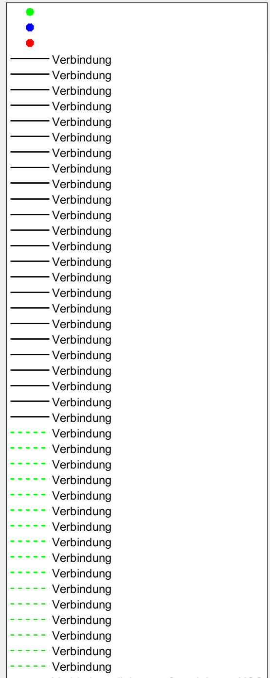 Jetzt habe ich das Problem, dass die Linienfarbe und -art für die Verbindungslinien gleich angezeigt werden (schwarz). Ich möchte aber für den Eintrag: "Verbindung A - B - C" die von mir im Code angegeben grün-gestrichelte Linienart anzeigen lassen.