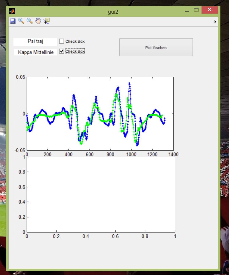 2.) Wenn ich die GUI starte, passiert es manchmal, dass beim ersten mal klicken der unteren Checkbox erstmal nur die grüne Linie erscheint. Beim abwählen und nochmaligen Anklicken kommt auch die blaue, oder wenn ich den Plot lösche und neu anklicke.