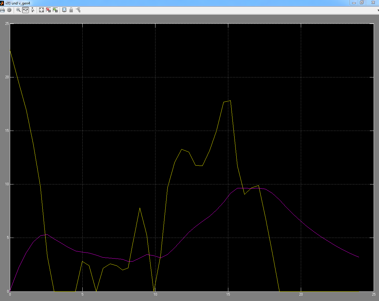 Nein, ich vermute, dass bei einer zeitkonstante in Sekunden und messwerten in Stunden einfach falsch gerechnet wird. Simulink bekommt von mir ja die Schrittanzahl, quasi 24 Schritte für 24 Stunden...verzögert die Stunden aber mit Sekunden im pt1.