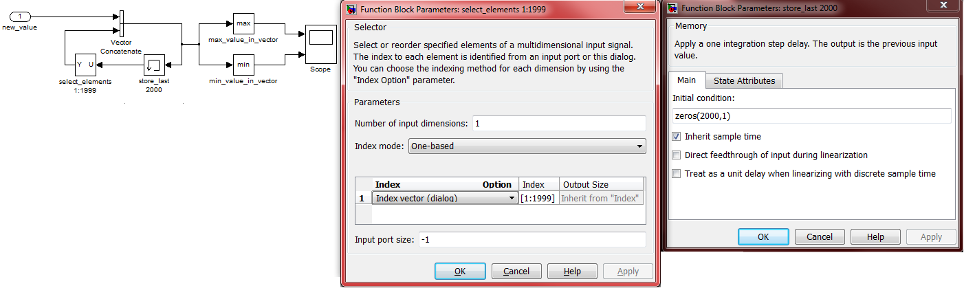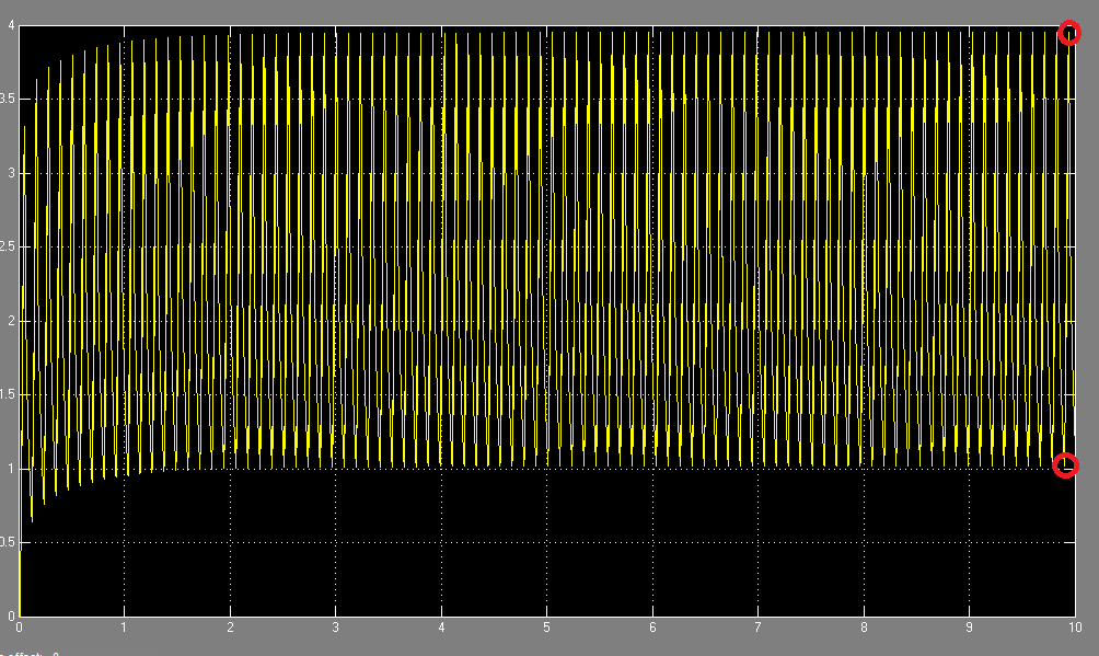 Dies ist nun sehr umständig, natürlich könnte ich alle Datenpunkte nun in Workspace speichern, minima mit Matlab auswerten, dies ist jedoch bei 8 Signalen und recht langer Einschwingzeit auch recht Leistungsintensiv. Hätte gerne eine lösung direkt in Simulink, falls sowas möglich ist. (der MinMax Block hat mir leider nicht geholfen, oder ich benutz ihn falsch).