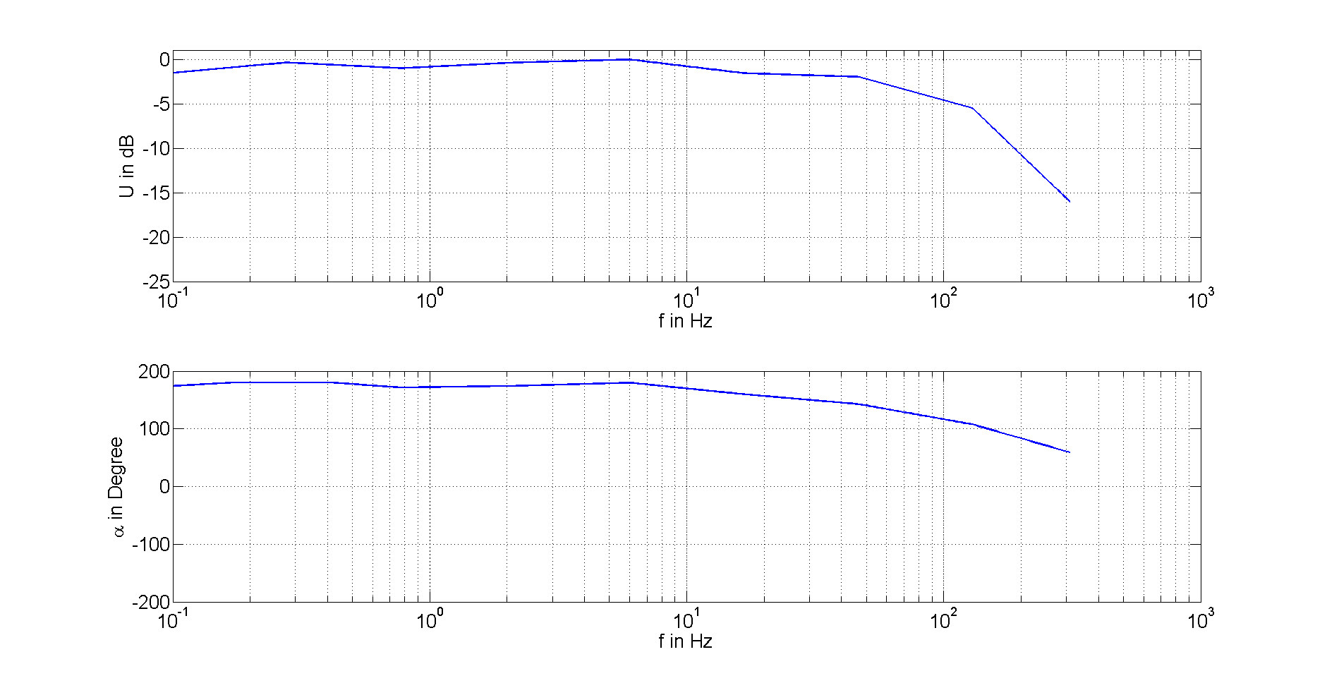 Ich erzeuge mit einem Signalanalysator einen Sweep von 0.1 Hz bis 1 kHz (ich habe bis 1 kHz gemessen, aber wieder was weggeschnitten, deshalb kam ich bei obere Frequenz bis ca. 300 Hz).