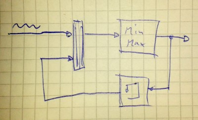 Du kannst einfach über einen Memory-Block den Ausgang des Min/Max-Blocks auf den Eingang eines Mux-Blocks führen. Auf den anderen Eingang des Mux legst Du Dein Signal.