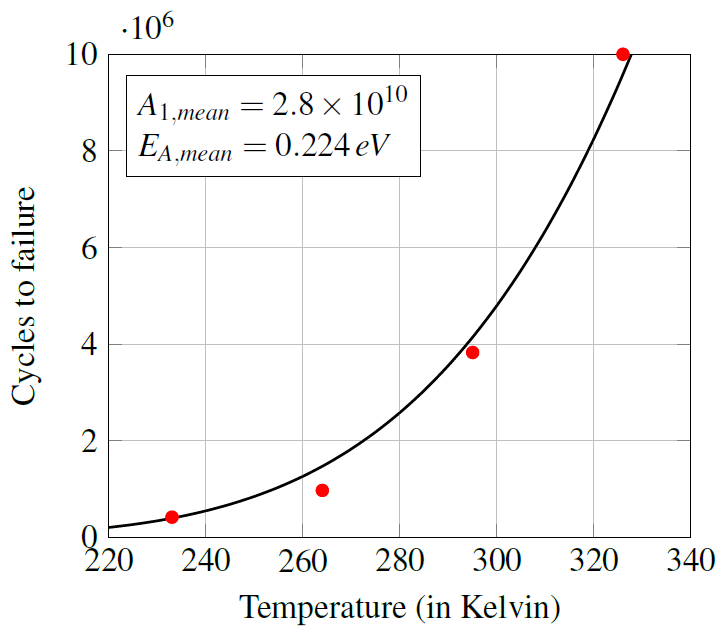 Diese Koeffizienten (in meinem Minimalbespiel sind das A0 und EA) sollen derart gefittet werden, dass die Funktion inkl. dieser gefitteten Koeffizienten das gesamte Ergebnis meiner Versuche bestmöglich abbildet (jeder Koeffizient ist eine Konstante für den gesamten Versuchsdatensatz). In meinem Minimalbeispiel hatte ich vier Versuchsdurchläufe bei verschiedenen Temperaturen (x1), woraus sich unterschiedliche Lebensdauern (x2) ergeben haben.