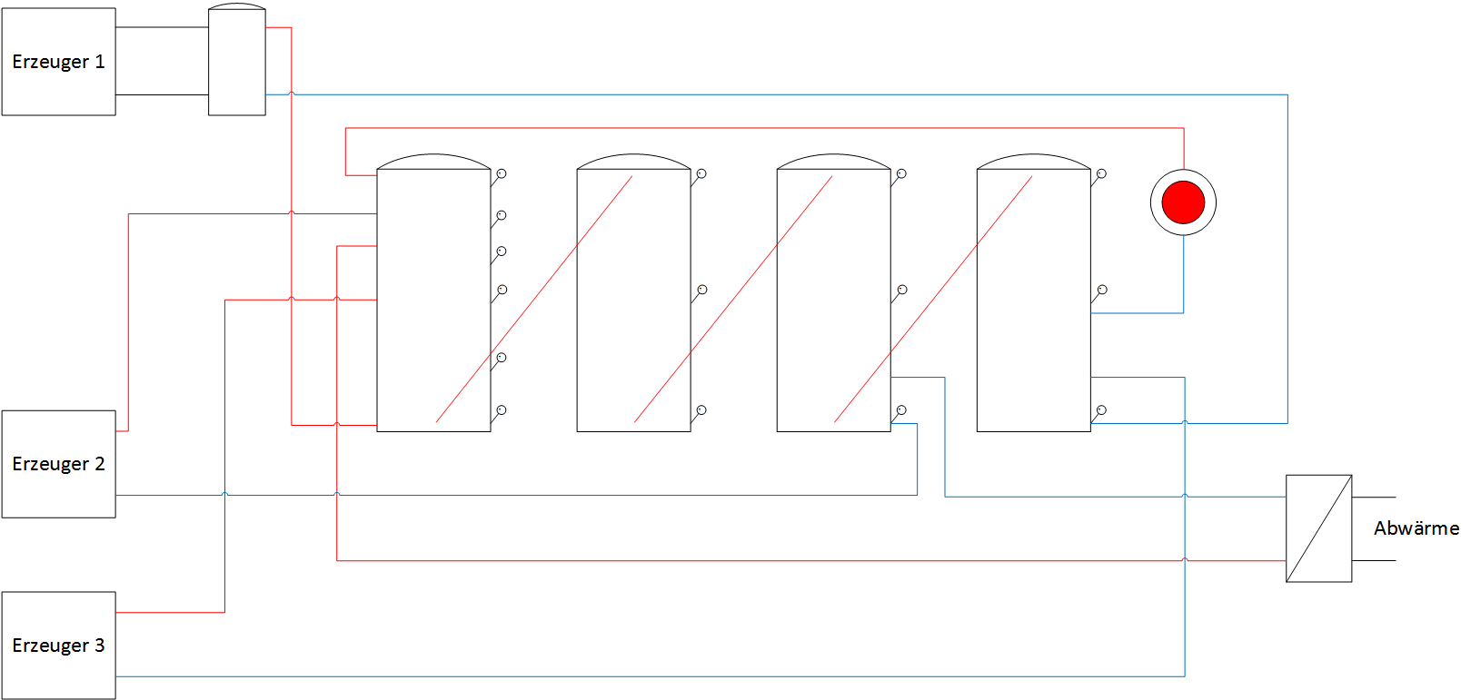 ich versuche eine Reihenschaltung von 4 Pufferspeichern, mit unterschiedlicher Anzahl an Inlets und Outlets abzubilden (siehe Anhang Prinzipschaltbild).