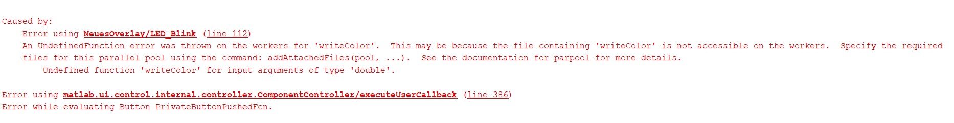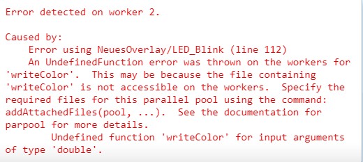 Die Fehlermeldung habe ich mal angehängt. Diesmal mit "writeColor", was die Funktion LED_Blink benutzt, um Kommandos zum LED-Ring zu schicken, wieder vom Arduino. Separat funktionieren beide Funktionen aber ich glaube spmd kommt nicht ganz mit den internen (?) Funktionen vom Arduino klar