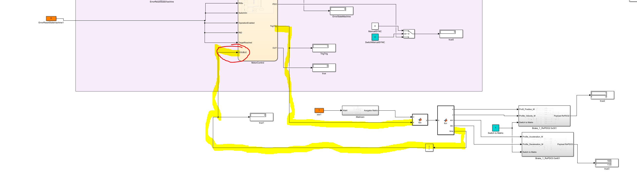 Das war eigentlich schon. Ich habe das Verhalten in einer seperaten .slx modelliert und es hat auch wunderbar funktioniert. Als ich es aber ins Hauptprogramm anschließen wollte gabs folgende Fehlermeldung: