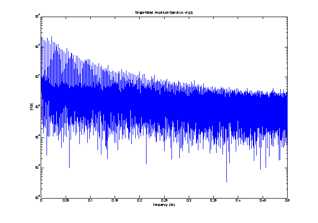 Mittels FFT soll man angeblich aus dem Plot die Frequenz ablesen können. Allerdings bekomme ich kein so schönes Ergebnis wie in der Matlab-Hilfe gezeigt. Ich könnte nun vermuten, dass es aufgrund eines Rauschens oder fehlender Dämpfung zu wirr ist. Daher habe ich versucht den Befehl resample zu nutzen, aber dessen Realisierung liegt mir noch fern.