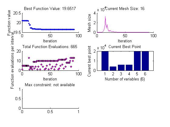 patternsearch kann ich benutzen, er verändert die startwerte nach einer weile auch sehr großzügig. nur hab ich das gefühl, dass er zu grob vorgeht und irgendwann nur zwischen festgefahrenen werten hin und her tauscht, z.b.
