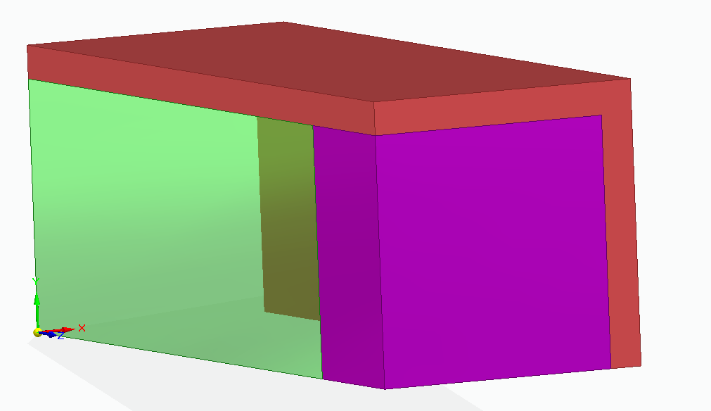 Zur Not kann auch die gesamte Geometrie gerechnet werden. Problem hierbei ist jedoch, dass ich zwar eine Unterteilung zwischen dem äußeren und dem inneren Teil generieren kann (in meinem Modell zwischen rot und grün/lila), jedoch kann ich keine Unterteilung zwischen grün und lila vornehmen.