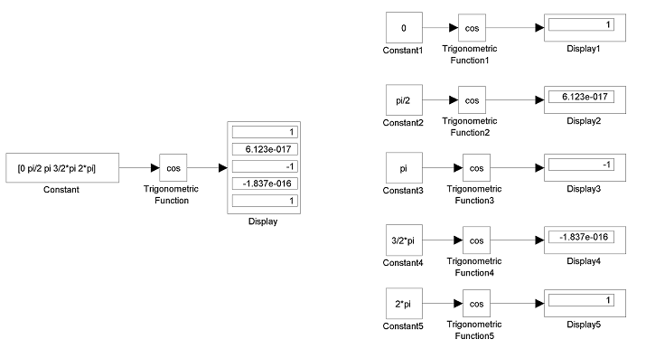 In den Anhang habe ich - nur um das Problem zu verdeutlichen - den Screenshot eines Models gepackt, welches den Kosinus einiger Konstanten berechnet und anzeigt.