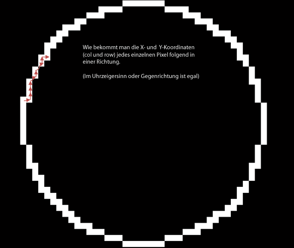 Ich haenge hier zwei Bilder an, im ersten Bild zeige ich was ich meine und im zweiten die Kreiskontur von der die Pixelkoordinaten gesucht sind.