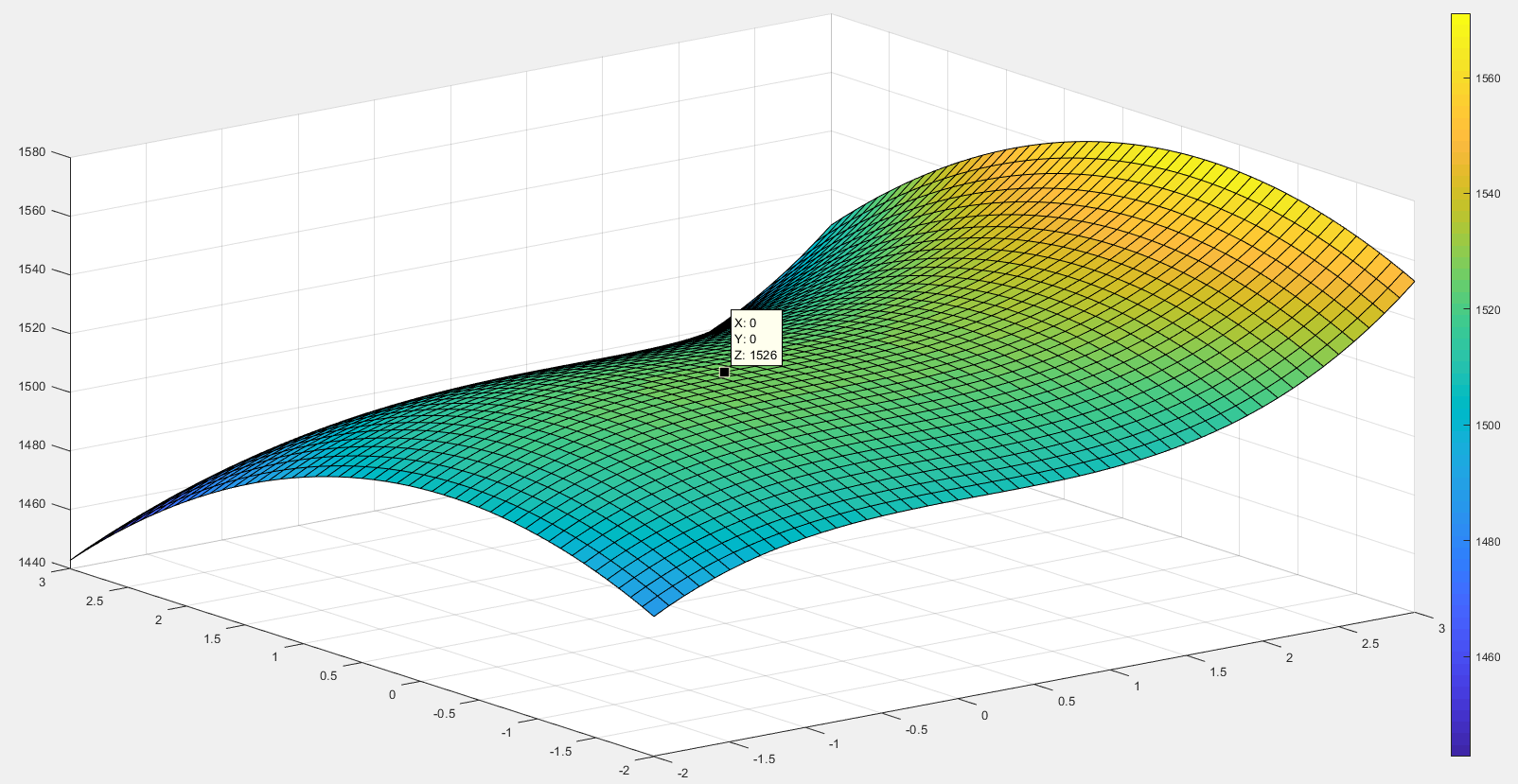 Die Funktionswerte liegen jetzt beispielsweise am Punkt (x=0, y=0) bei z=1526...