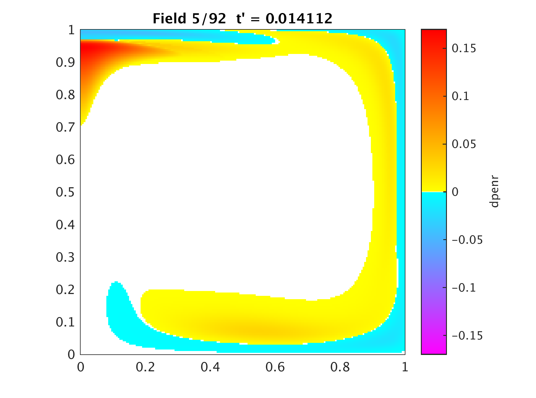Ich habe ein Feld mit positiven und negativen Werten. Die diese allerdings jeweils eine andere Bedeutung haben, würde ich gerne für positive und negative jeweils eine eigene Colormap verwenden, dazwischen (i.e. fielddata = 0), sollte es weiß bleiben. Das ist auch noch relativ einfach und habe ich in etwa so angestellt: