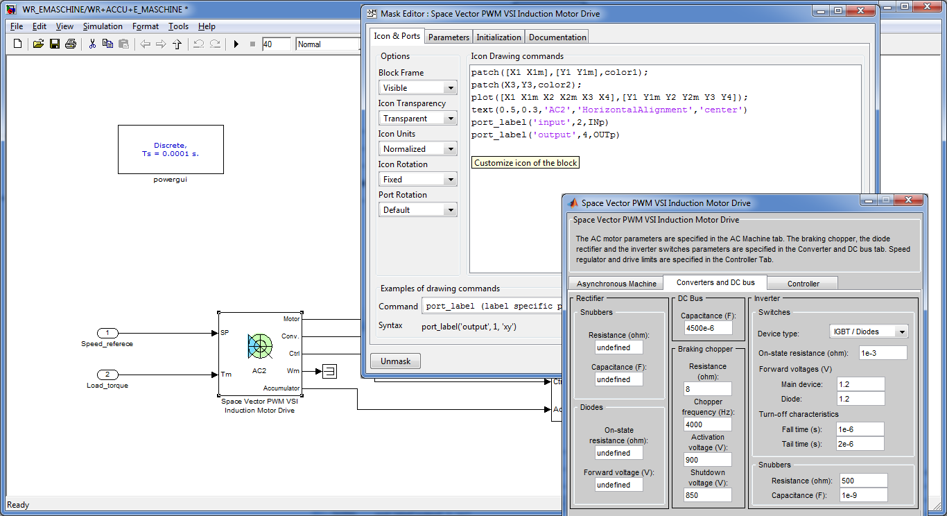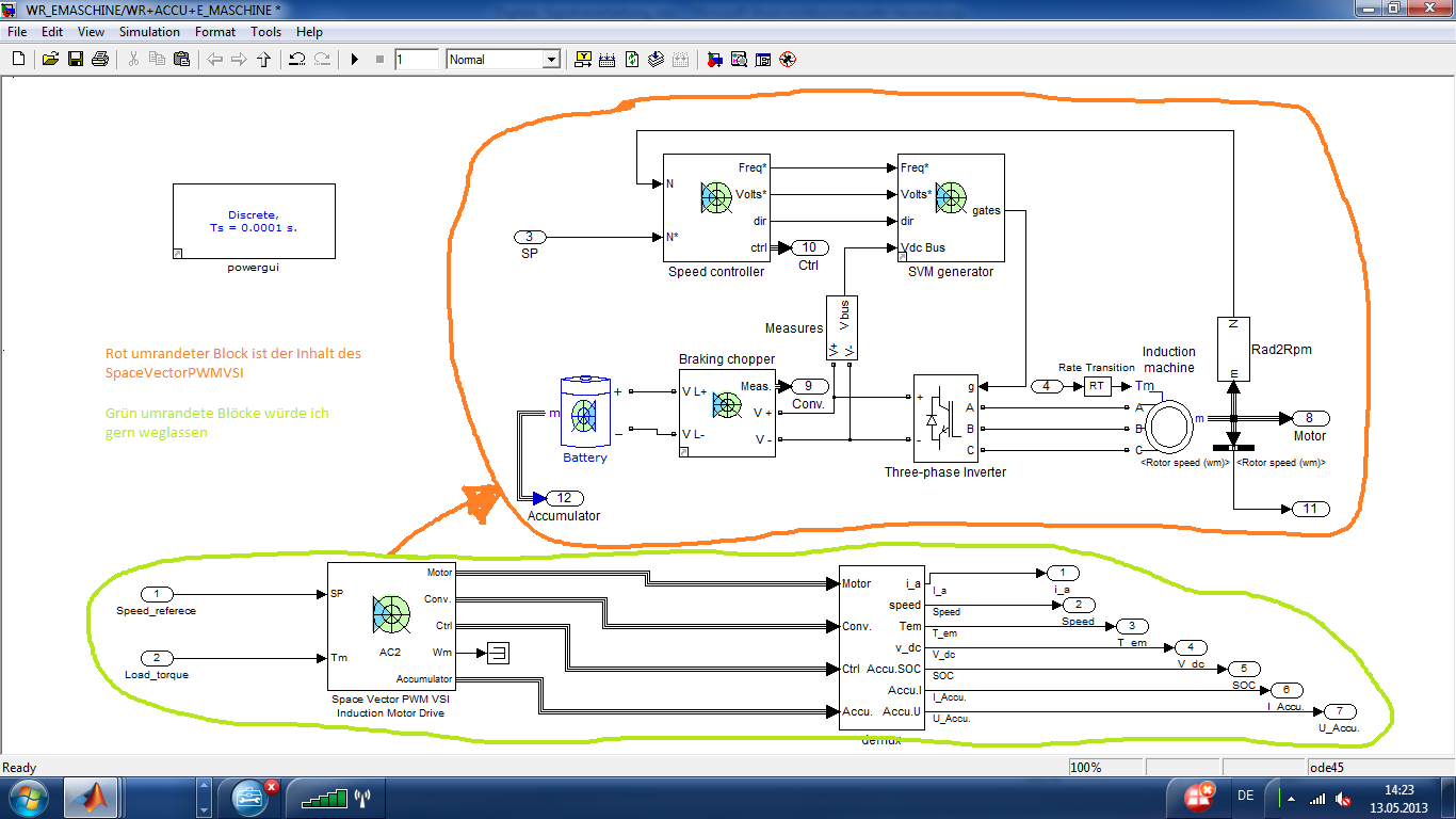 - ich habe ein fertiges Modell (Space Vector PWM VSI AC2) auf Batteriebetrieb umgebaut