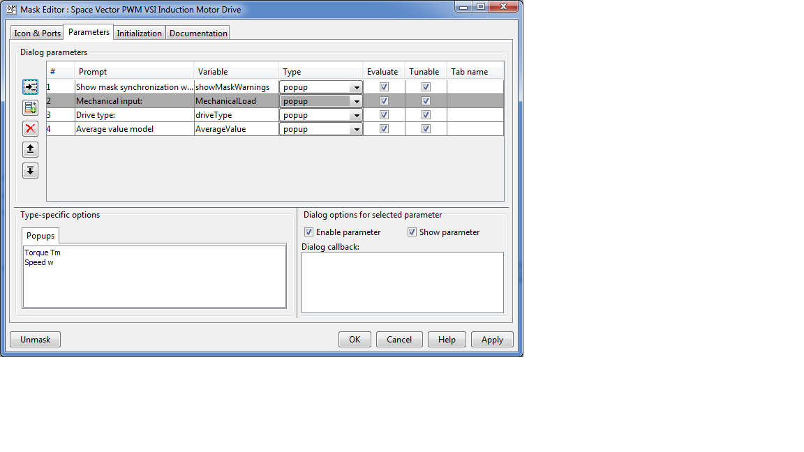 Anbei in den Screenshots ist der verwendete Simulinkblock mit zugehöriger Maske zu sehen.