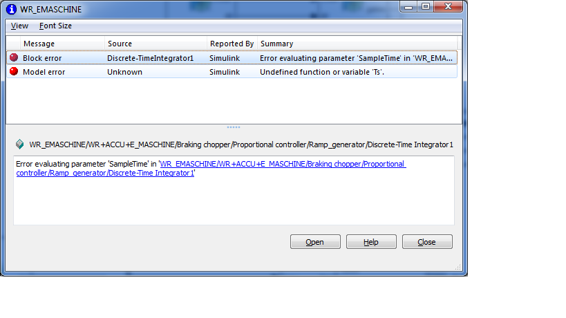 Jedoch bekomme ich eine Fehlermeldung seitens Simulink (siehe Bild).