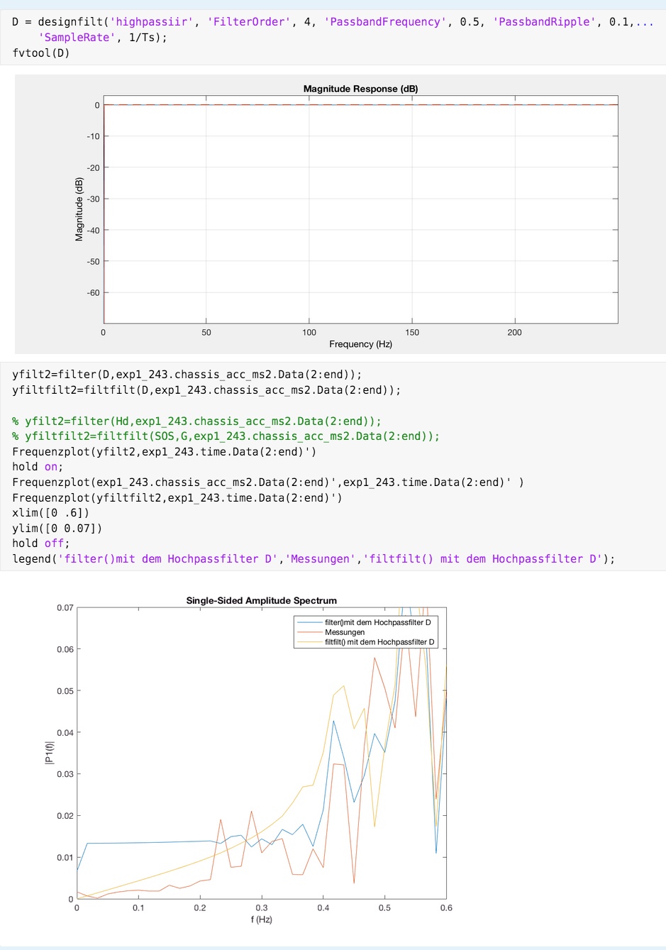 Sobald ich die Eckfrequenz klein wähle, wie hier 0.5Hz, wird der Frequenzbereich (0-0.5Hz), welcher unterdrückt werden sollte, verstärkt. Da mein Betreuer von der Uni im Urlaub ist, bräuchte ich dringend eure Hilfe! Vielen Dank schon mal!