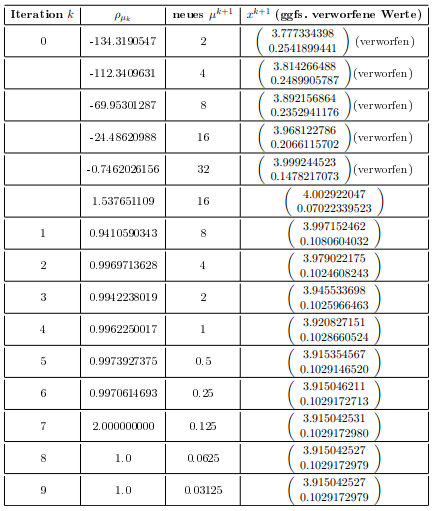 Wähle Startwertvektor x bzw. xk und Anfangswert für den Parameter μk.