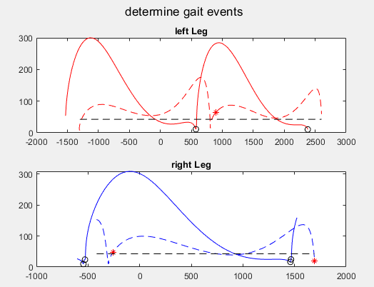 Ich habe Koordinatenverläufe von Beinen beim menschlichen Gang. Über verschiedenen Rountinen habe ich recht zuverlässig die Punkte berechen können, an dem die Ferse auf dem Boden aufkommt und die Zehen den Bode verlassen. Doch leider schleicht sich (je nach Aufnahme Qualität der Koordinaten) fehlerhafte Punkte ein oder Punkte werden nicht erkannt.