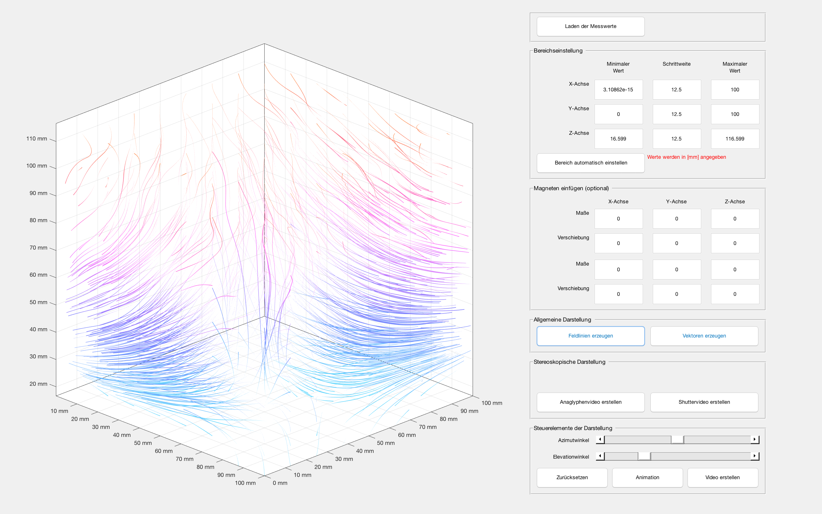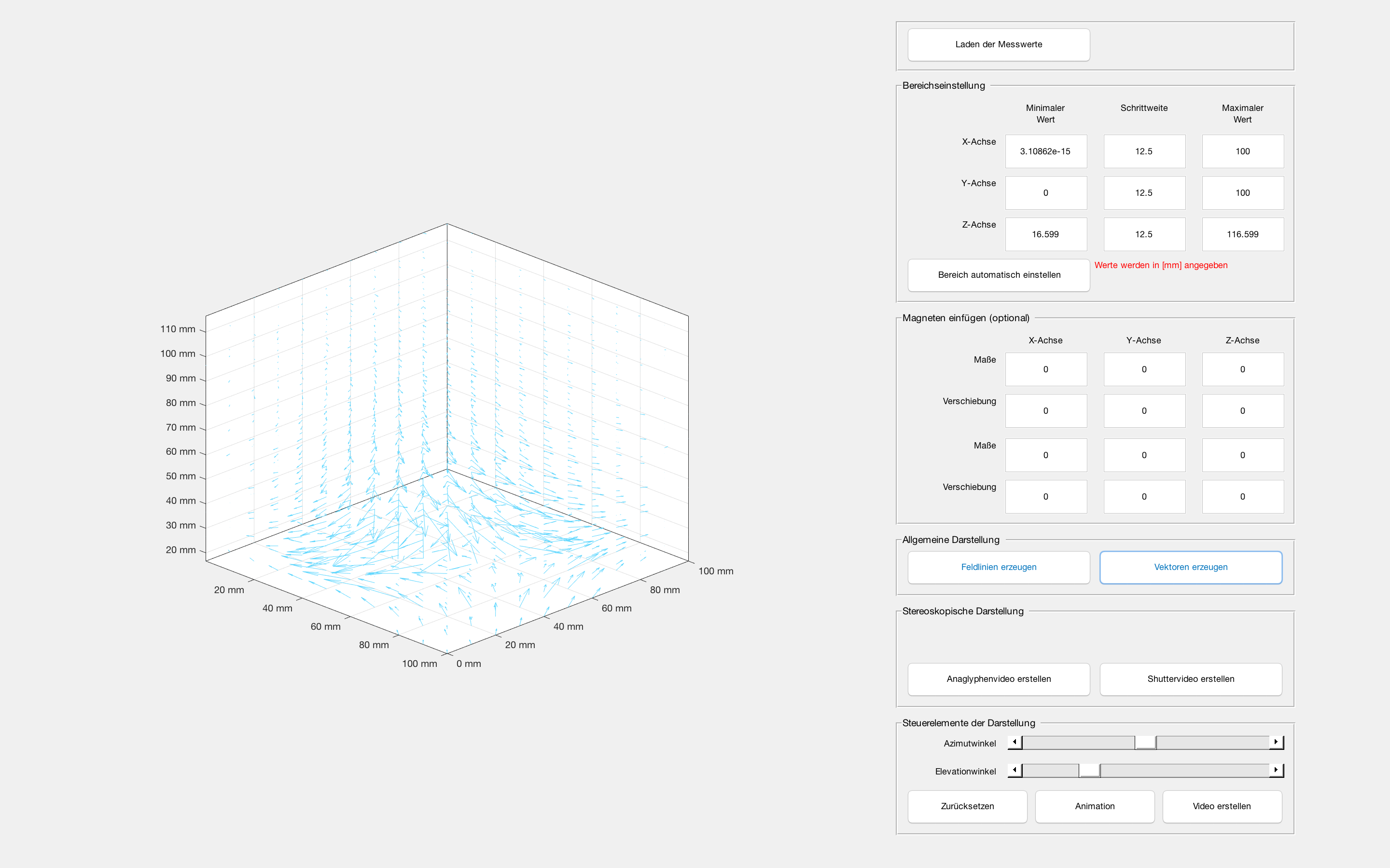 Das ist der Quellcode für den Vektorplot. Wie schaffe ich es, dass die Box gleich groß bleibt? Die Eigenschaft "axis(handles.axes1,'vis3d')" muss erhalten bleiben.