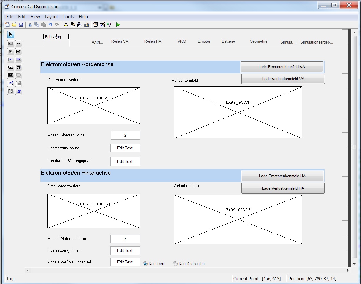 ich muss in einer vorhanden gui ein paar elemente hinzufügen. die gui ist folgendermaßen aufgebaut: oben horizontal sind verschiedene buttons wie Fahrzeug, Reifen VA, Reifen HA usw angeordnet. Jedes dieser Elemente öffnet mir beim klicken darauf eine Ebene oder Tab wo man Diagramme usw sehen kann (gleich darunter).
