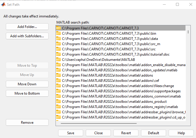 ich habe es jetzt nochmal so probiert, wie du es gesagt hast und leider ist es dabei geblieben. Ich habe den Ordner im CARNOT-Ordner gelöscht und die init-Datei mit Matlab geöffnet. Wie gesagt, leider alles beim alten.