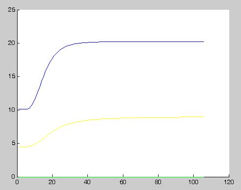 Ich habe ein ziemlich einfaches SimMechanics Modell: Ein Massepunkt der Masse 1kg ist rotier- und verschiebbar mit der Umgebung verbunden, dabei wird der Drehwinkel Alpha und der Abstand vom Ausgangspunkt r1 sowie die beiden Ableitungen davon gemessen. Dank den Anfangsbedingungen gilt: alpha[0] = pi/3 rad, alpha_dot[0] = 4.5 rad/s, r1[0] = 1, r1_dot[0] = 0.