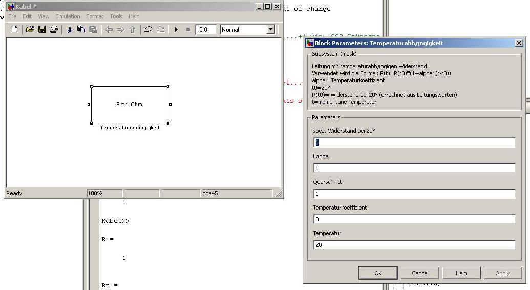 Beim klicken auf dass Subsystem sollte sich dann eine Maske öffnen, in der ich die einzelnen Parameter der Formel eingeben kann...