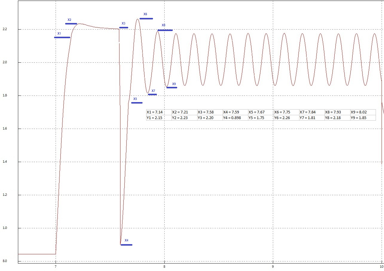 Zum Thema: Ich habe auf ein System, welches konstant mit 1.15 läuft, einen Sprung von 0.25 gegeben. Nach innerhalb einer Sekunde hat sich das System dann bei ca. 2.1 eingependelt.
