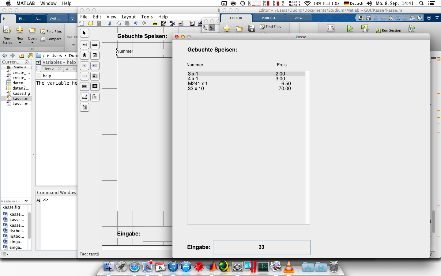 ich versuche gerade ein kleines Kassensystem in Matlab zu programmieren.