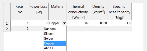 In der ersten Spalte sind die Bauteile, in der zweiten Spalte hätte ich gerne eine Choice List/Popup-menü mit dem ich das zugehörige Material zum Bauteil auswähle. In Spalte 4, 5 und 6 sollen dann die Materialeigenschaften des entsprechenden Materials angezeigt (z.B. Wärmeleitfähigkeit, Dichte, ...) und gegebenenfalls manuell modifiziert werden.