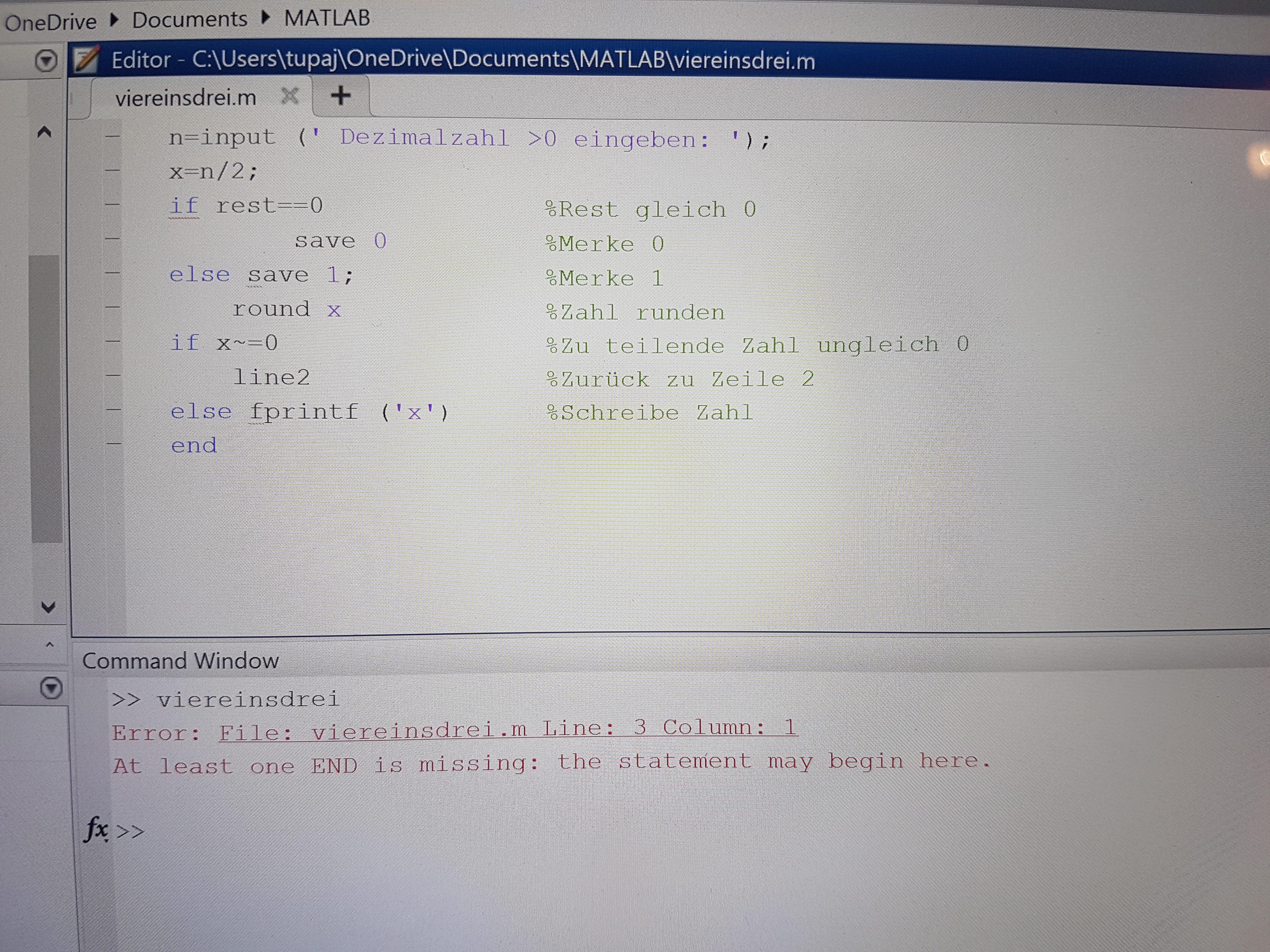 Erstellen Sie ein Programm aus dem nachfolgendem flussdiagramm welches eine per Tastatur eingegebene Dezimalzahl in eine Binärzahl umwandeln erzeugen Sie die Binärzahl als Vektor speichern Sie das Programm als Script ab. Bitte verwenden Sie keine inbuilt function um die eingegebene Dezimalzahl direkt in eine Binärzahl umzuwandeln