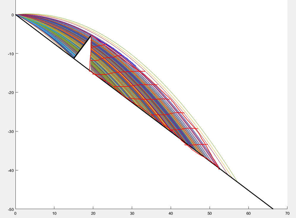 Als Matlab-Neuling stehe ich im Zuge einer Steinschlagsimulation vor dem Problem meine Flugtrajektorien mit der Funktion des Steinschlagschutznetztes zu verschneiden. Hierbei sollen alle Flugbahnen welche das Netz treffen dort enden, alle anderen weiterlaufen bis diese die Böschung erreichen.