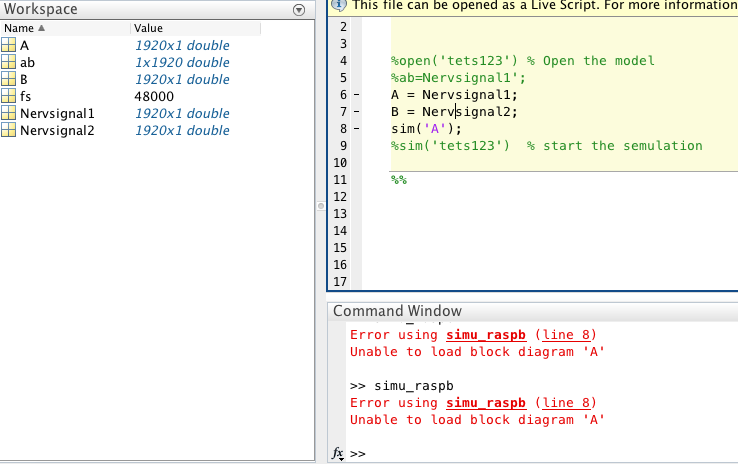 Der "From Workspace" Block ist schon mal richtig. Der "sim" Befehl benötigt aber den Namen des Modells, nicht des Signals, also in diesem Fall