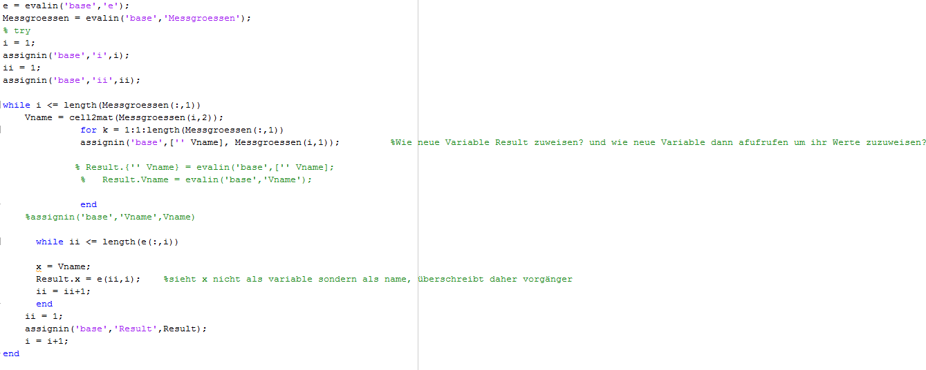 Momentan bin ich soweit, dass ich die Variablen in den Workspace geschrieben bekomme.