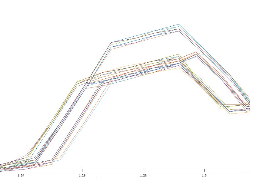 Mir ist wichtig den maximalen Abstand der Kurven (auch an bestimmten Stellen) zu ermitteln(am wichtigsten ist es in der Steigung), im Anhang sind es nur 2, in echt sind es ca 100 stück.