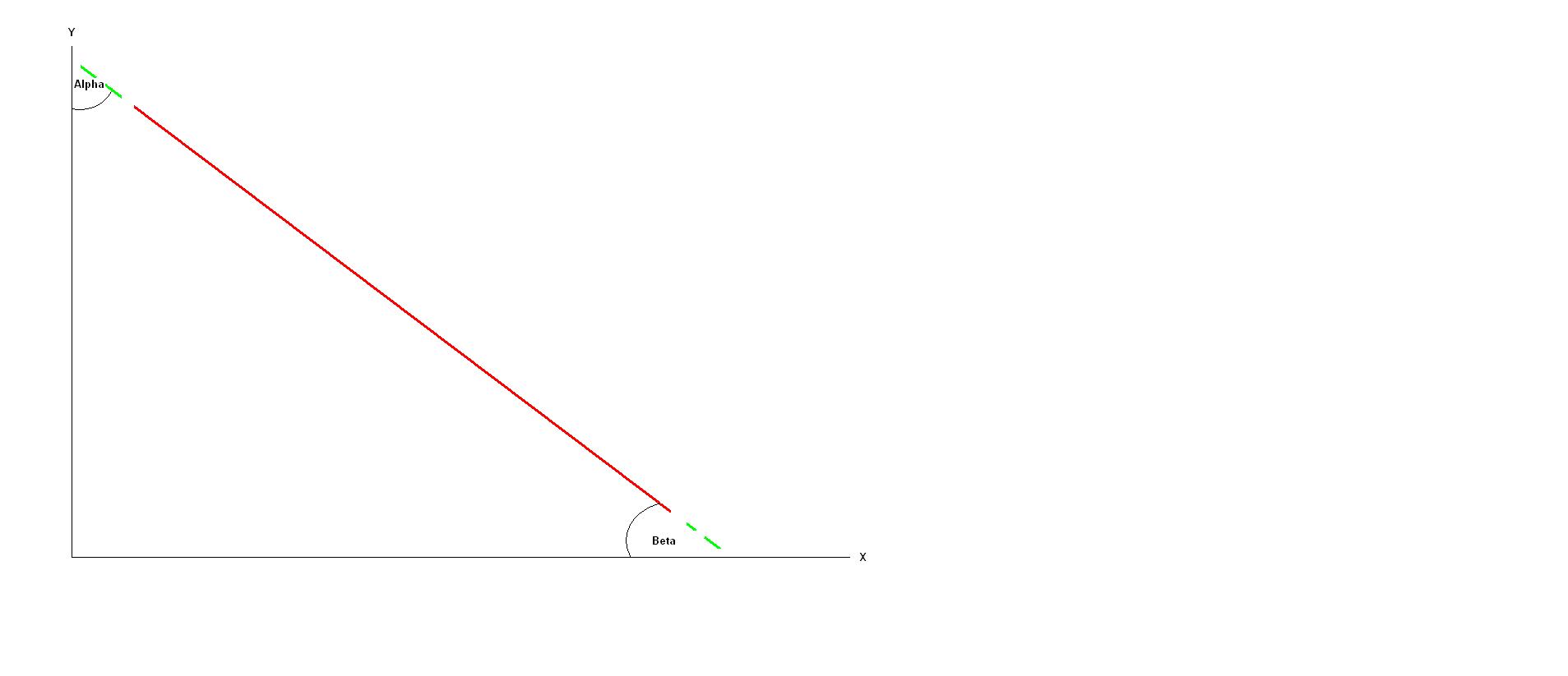 bitte nicht auslachen, aber gibt es in matlab einen Befehl, der mir den Neigungswinkel einer Geradden im Diagramm bezogen auf die x-Achse und y-Achse ausgibt? Habe mal ne Skizze angefügt, wie ich das meine. Rot ist die Gerade, grün die Verlängerung zu den Achsen!