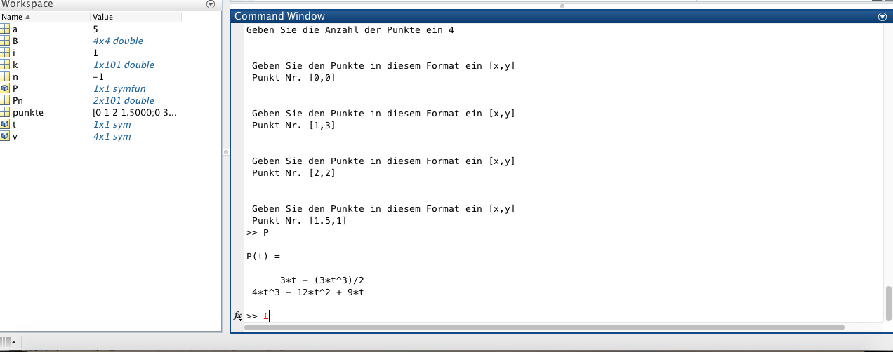 Zu der Frage was ich genau mache: Ich versuche eine Bézier-Kurve aus den 4 Punkten, mit einem Polynom vom Grad 3 zu erzeugen.