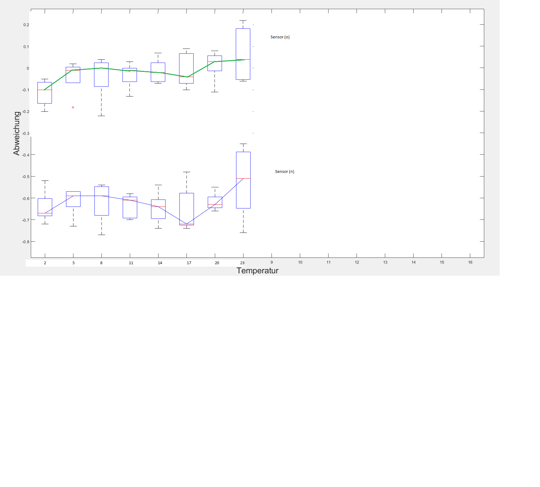 ich bin derzeit am Verzweifeln wie man 2 Messreihen von Temperatursensoren mithilfe von Boxplots darstellen kann. Ich habe 2 Sensoren jeweils 8 Temperaturen (p) ablaufen lassen und die gemessene Temperaturabweichungen zum Idealwert würde ich gerne nun darstellen.