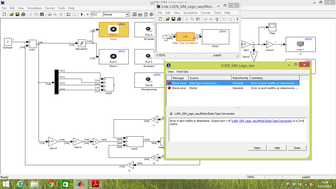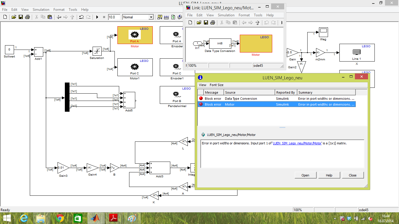 Die rein digitale Simulation - ohne Lego Hardware funktioniert übrigens einwandfrei. (Inverses Pendel)