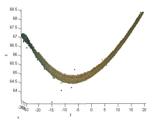 sry, dass meine Fragestellung nicht ganz klar rüber gekommen ist. Ich habe mal 2 Bilder angehängt. Dass erste ist eine interpolierte Fläche aus der 3D Punktwolke des zweiten Bildes. Wenn man jetzt die Kurve ansieht dann sieht man, dass diese eine Starke Wölbung / Krümmung aufweist (ist immer die Gleiche) und diese würde ich aber gerne so korrigiert haben, dass diese Wölbung / Krümmung korrigiert wird.