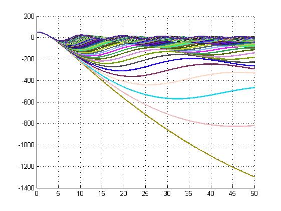 beim 2d plotten ist das keine herausforderung da mach ich einfach hold on und lasse alle schwingungen in ein diagramm eintragen mit dem print befehl und einer schleife. Dabei lasse ich die y schwingung zum workspace ausgeben und den tout verwende ich als x achse.