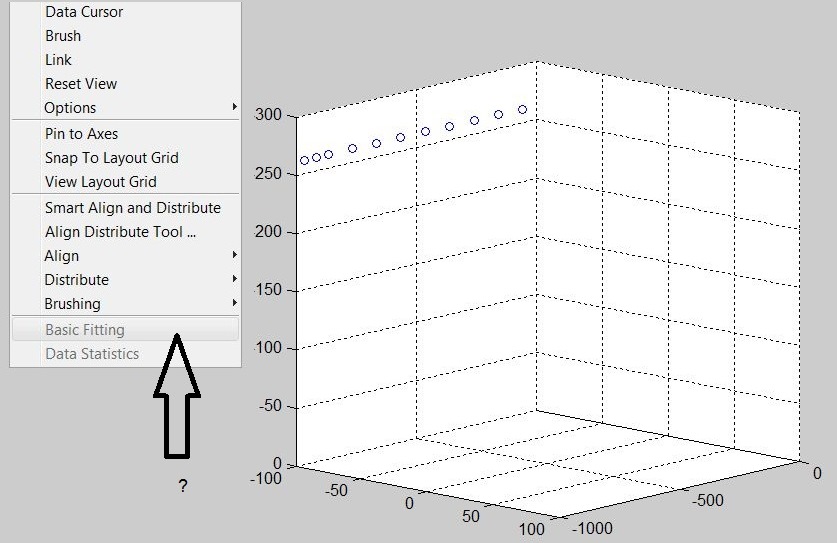 Dadurch bekomme ich ein R² Wert und die von Matlab verwendete Gerade würde ich, analog zum 2D plot wo es kein Problem wäre, gerne darstellen.